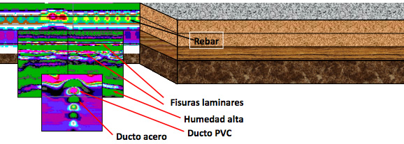 Las microondas son medidas y comparadas con modelos matemáticos y el proceso de análisis de los datos que genera permite visualizar y analizar las características de estos elementos, determinar los espesores y la humedad en los diferentes estratos que los conforman, detecta infraestructura subterránea, componentes internos y huecos en el subsuelo.