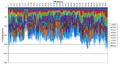 Alimentación de un sistema de bases de datos, que genera elementos gráficos de la conformación y características del subsuelo