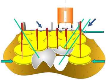 La aplicación de las resinas poliméricas URETEK® se realiza a través de inyecciones ubicadas en lugares y a profundidades definidas de acuerdo con los objetivos del proyecto y la información que proporciona el Sistema.
